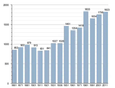 في سنة 1861 بلغ عدد السكان 853 نسمة، وتطور العدد ليصل في سنة 2011 لـ 1٬823 نسمة.