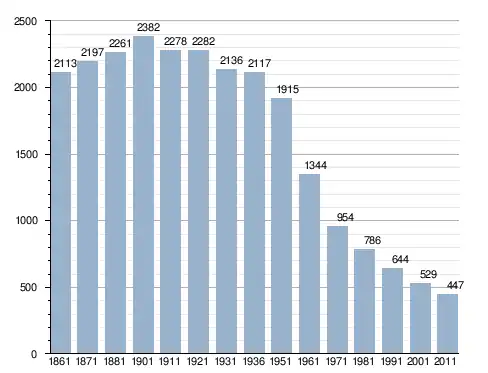 في سنة 1861 بلغ عدد السكان 2٬113 نسمة، وتطور العدد ليصل في سنة 2011 لـ 447 نسمة.