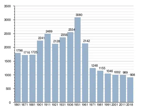 في سنة 1861 بلغ عدد السكان 1٬796 نسمة، وتطور العدد ليصل في سنة 2018 لـ 908 نسمة.