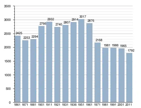 في سنة 1861 بلغ عدد السكان 2٬425 نسمة، وتطور العدد ليصل في سنة 2011 لـ 1٬792 نسمة.