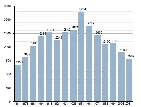 في سنة 1861 بلغ عدد السكان 1٬353 نسمة، وتطور العدد ليصل في سنة 2011 لـ 1٬562 نسمة.