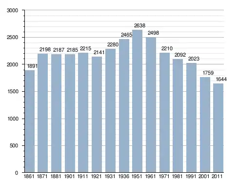 في سنة 1861 بلغ عدد السكان 1٬891 نسمة، وتطور العدد ليصل في سنة 2011 لـ 1٬644 نسمة.