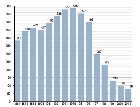 في سنة 1861 بلغ عدد السكان 382 نسمة، وتطور العدد ليصل في سنة 2011 لـ 79 نسمة.