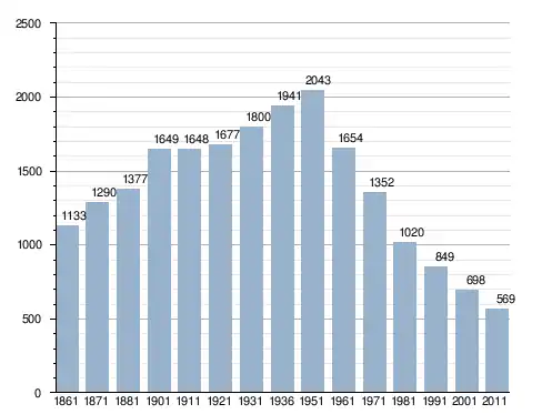 في سنة 1861 بلغ عدد السكان 1٬133 نسمة، وتطور العدد ليصل في سنة 2011 لـ 569 نسمة.