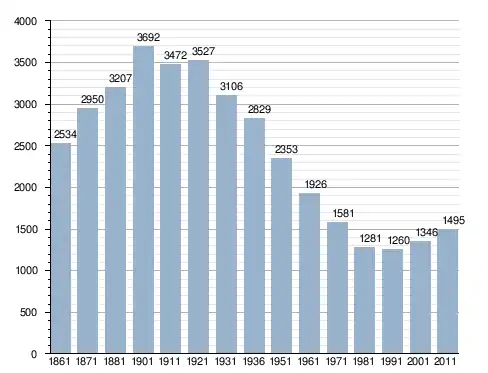 في سنة 1861 بلغ عدد السكان 2٬534 نسمة، وتطور العدد ليصل في سنة 2011 لـ 1٬495 نسمة.