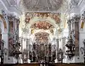 سقف بهو كا ريتزونيكو في البندقية مع رسومات تربيع لجيوفاني بتيستا كروساتو (1753)، صندوق بأدراج لتشارلز كريسينت (1730)، بهو إقامة فورتسبورغ ليوهان بالتازار نويمان (1749-50) | |||||