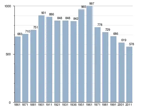 في سنة 1861 بلغ عدد السكان 683 نسمة، وتطور العدد ليصل في سنة 2011 لـ 578 نسمة.