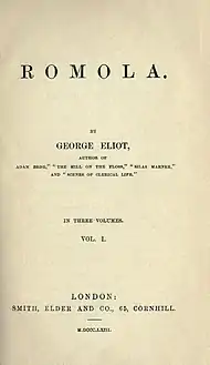 رومولا (بالإنجليزية: Romola) (نشرت بين عامي 1862-1863) هي رواية تاريخية بقلم جورج إليوت وتدور أحداثها في القرن الخامس عشر، وهي "دراسة عميقة للحياة في مدينة فلورنسا من الناحية الفكرية والفنية والدينية والاجتماعية".[1][2][3] ظهرت للمرة الأولى في أربعة عشر أجزاء ونشرت في مجلة كورنهيل من يوليو 1862 (المجلد 6، العدد 31) إلى أغسطس 1863 (المجلد 8، العدد 44). وتدور أحداث القصة في خضم الأحداث التاريخية الفعلية خلال عصر النهضة الإيطالية، وتضم القصة العديد من الشخصيات البارزة في هذه الفترة من تاريخ فلورنسا.