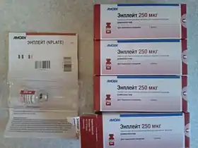 تعد شركة أمجن هي الشركة التي طورت الدواء، وتقوم بتسويقه تحت اسم تجاري هو Nplate.