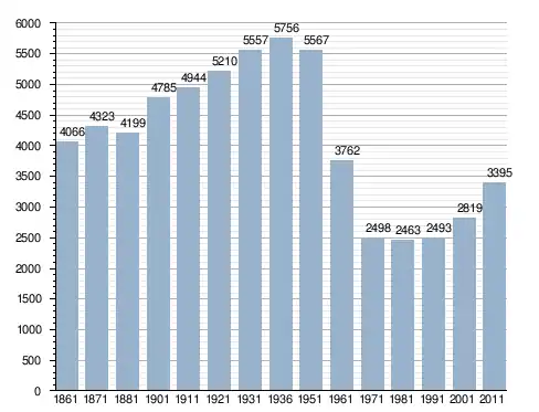 في سنة 1861 بلغ عدد السكان 4٬066 نسمة، وتطور العدد ليصل في سنة 2011 لـ 3٬395 نسمة.