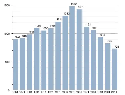 في سنة 1861 بلغ عدد السكان 902 نسمة، وتطور العدد ليصل في سنة 2011 لـ 728 نسمة.