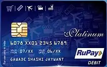 |CitationClass=تم تجاهله (مساعدة) - "Digital India Milestone: The Number Of Debit Cards Touches 1 Billion Mark With 560 Million RuPay Cards Of Jan Dhan Scheme". swarajyamag.com. مؤرشف من الأصل في 25 يوليو 2019. اطلع عليه بتاريخ 25 يوليو 2019. الوسيط