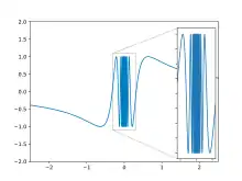- sin (1/x) ( topologist هو شرط منحنى) التذبذب 2 في x = 0 ، 0 في مكان آخر.