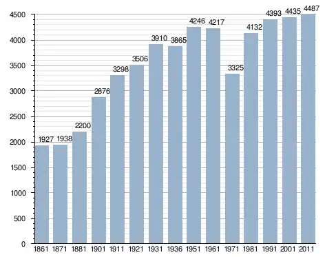 في سنة 1861 بلغ عدد السكان 1٬927 نسمة، وتطور العدد ليصل في سنة 2011 لـ 4٬487 نسمة.