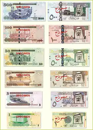 - العملات الورقية السعودية: البنك المركزي السعودينسخة محفوظة 06 أبريل 2015 على موقع واي باك مشين. [وصلة مكسورة]