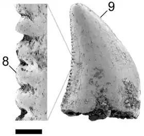 ![]() سن (R. gilmorei) مع تكبير السُنَينات | |