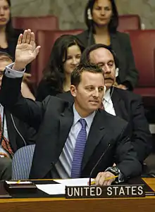 |CitationClass=تم تجاهله (مساعدة) - "The president-elect was considering tapping Richard Grenell as U.S. ambassador to the United Nations." – [[شيكاغو تريبيون|]], November 14, 2016 نسخة محفوظة 2019-04-28 على موقع واي باك مشين.