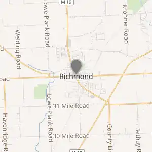 - "صفحة ريتشموند (ميشيغان) في GeoNames ID". GeoNames ID. اطلع عليه بتاريخ 6 مارس 2021. الوسيط