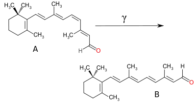 عندما يمتص 11-سيس-ريتينال ضوءا يتحول إلى اوول-ترانس-ريتينال all-trans-retinal ، [1] ,وينفصل بذلك عن السكوتوبسين .