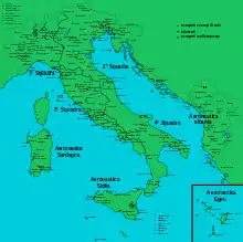 خلال الحرب العالمية الأولى، قامت شركة Corpo Aeronautico Militare الإيطالية، التي كانت لا تزال جزءًا من الجيش الملكي الإيطالي، بتشغيل مزيج من المقاتلات الفرنسية والقاذفات المحلية الصنع، ولا سيما طائرة كابروني العملاقة. كان لدى ريجيا مارينا (البحرية الملكية) ذراعها الجوي الخاص بها، وتصنع القوارب الطائرة المحلية الصنع.
