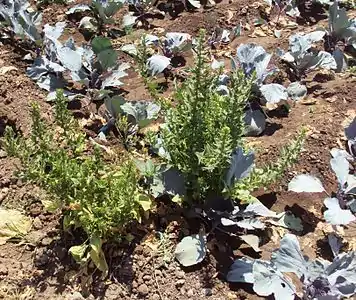 نبات الريحان بأحد الحقول المصرية متداخلًا مع نبات الكرنب.