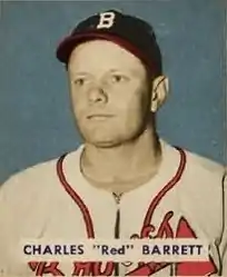 |CitationClass=تم تجاهله (مساعدة) - Barrett, Charles (August 2, 1990). "Charles (Red) Barrett, Pitcher, 75". NY Times. مؤرشف من الأصل في 28 ديسمبر 2019. اطلع عليه بتاريخ February 8, 2008. الوسيط