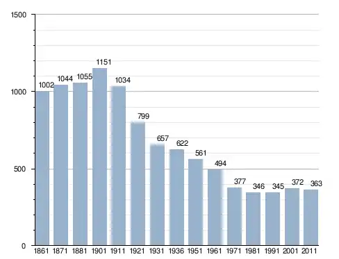 في سنة 1861 بلغ عدد السكان 1٬002 نسمة، وتطور العدد ليصل في سنة 2011 لـ 363 نسمة.