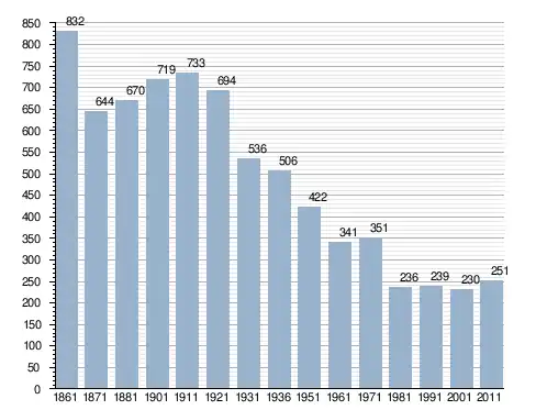 في سنة 1861 بلغ عدد السكان 832 نسمة، وتطور العدد ليصل في سنة 2011 لـ 251 نسمة.