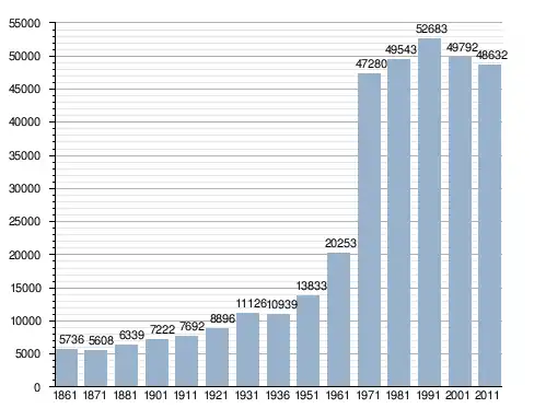 في سنة 1861 بلغ عدد السكان 5٬736 نسمة، وتطور العدد ليصل في سنة 2011 لـ 48٬632 نسمة.
