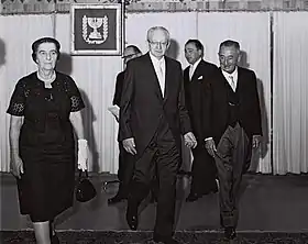 | وولف (الأول على اليمين) برفقة جولدا مائير وو | |