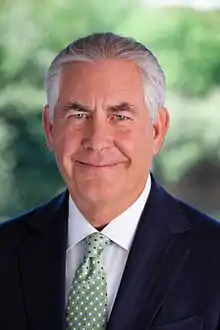 ريكس واين تيلرسون (بالإنجليزية: Rex Tillerson) مهندس مدني أمريكي ومسؤول سابق في مجال الطاقة وهو وزير الخارجية الأمريكي السابق في الفترة من 1 فبراير 2017 وحتى 31 مارس 2018 حيث أعلن الرئيس الأمريكي دونالد ترامب عن إقالته من منصبه، وعن نيته ترشيح مدير وكالة المخابرات المركزية مايك بومبيو خلفاً له كوزير للخارجية. انضم تيلرسون إلى إكسون في عام 1975، وترقى ليعمل كرئيس ومدير تنفيذي لشركة إكسون موبيل من 2006 إلى 2016.[8][9][10]