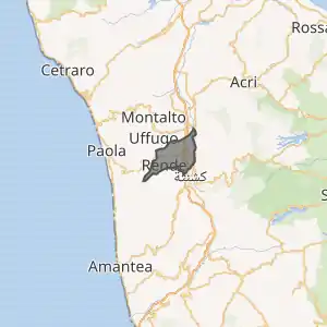 Rende ريندي، مدينة إيطالية في مقاطعة كوزنسا بإقليم كالابريا جنوبي البلاد، مقر جامعة كالابريا.[7][8][9] يبلغ عدد سكانها حوالي 35.221 نسمة، ويصل إلى 60000 إذا ما حسنبا طلاب الجامعة الذين يعيشون هناك. وتنقسم المدينة إلى جزئين : البلدة القديمة والواقعة فوق تلة عالية، والمنطقة الحديثة على مستوى الأرض وهي مركز اقتصاد المدينة.