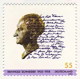 رينولد شنايدر (بالألمانية: Reinhold Schneider) (و. 1903 – 1958 م) هو شاعر، ومؤلف، ومترجم، وكاتب، ومقاوم عسكري ألماني، ولد في بادن بادن[10]، توفي في فرايبورغ[11]، عن عمر يناهز 55 عاماً.