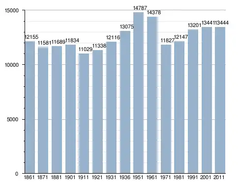 في سنة 1861 بلغ عدد السكان 12٬155 نسمة، وتطور العدد ليصل في سنة 2011 لـ 13٬444 نسمة.
