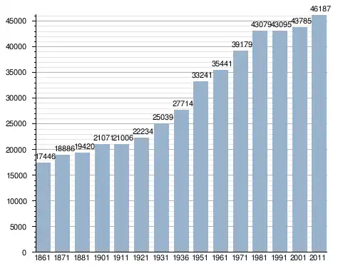 في سنة 1861 بلغ عدد السكان 17٬446 نسمة، وتطور العدد ليصل في سنة 2011 لـ 46٬187 نسمة.