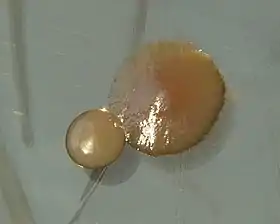 ![]() مستعمرة زائفة زنجارية (يمين) في آجار تربتيكيز الصويا | |