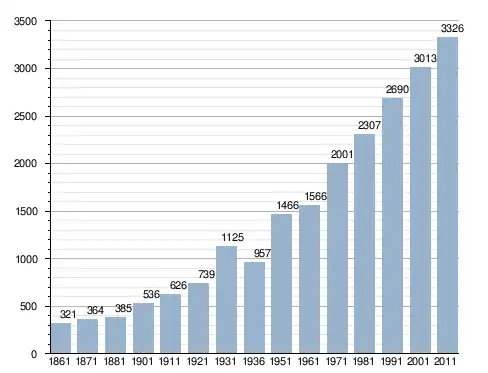 في سنة 1861 بلغ عدد السكان 321 نسمة، وتطور العدد ليصل في سنة 2011 لـ 3٬326 نسمة.