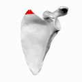 ![]() السطح الخلفي للوح الكتف الأيسر. الزاوية العلوية للكتف موضحة باللون الأحمر. | |