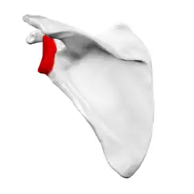 الأحدوبة فوق الحقة (Supraglenoid tubercle) باللون الأحمر.
