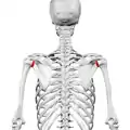 عرض أمامي. رأس لوح الكتف مبين باللون الأحمر.