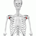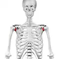 عرض خلفي. رأس لوح الكتف مبين باللون الأحمر.