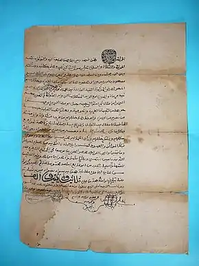تم في سنة 888 هجري الموافق لسنة 1483 ميلادي بعقد موقع من طرف الإمام العلي المطاع أبي يحيا زكرياء (من أمراء الدولة الحفصية) يفوض للشيخ أبي عبد الله محمد بن إدريس بتسيير زاوية ڤجال وأحباسها.[2][3][4][5][7]