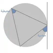 توضيح الزاوية المماسية مع المحيطية