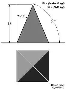 لتحويل منشور إلى هرم قائم, في النمذجة ثلاثية الأبعاد, ينبغي تحديد زاوية الاستدقاق والتي هي متتامة مع زاوية ميلان واجهة الهرم