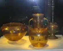 وهذا جزء من إناء فاطمي العصر، وقد زُخرف بالكتابة الكوفية مع الكائنات المتقابلة ويرجع إلى القرن الخامس الهجري، أما هذه القنينة وتلك المكحلة فمن البلور الصخري، وقد زخرفتا بالقطع والشطف في مصر الفاطمية خلال القرن الخامس الهجري. والبلور هو زجاج مضافا إلى خلطته عناصر ثقيلة مثل الكوبلت ويتميز بكثافة عالية.