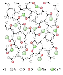 - السيليكا التي تشكل مصفوفة الذرات الأساسية في بنية الزجاج،[4] والتي كانت تضاف قديمًا في صورة كوارتز مسحوق، ثم كرمال في عصر الرومان.[5]