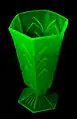 زجاج اليورانيوم متوهج تحت ضوء الأشعة فوق البنفسجية