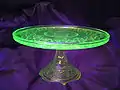 صفيحة زجاجية من اليورانيوم تتوهج تحت ضوء الأشعة فوق البنفسجية.