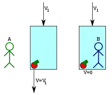 يمكن تسمية هذا يتحويل جاليليو. إذا كان الجسيم يتحرك بسرعة dxdt = v في المرجع الأول فإن في الثاني يتحرك بسرعة: