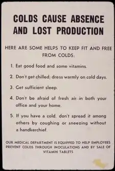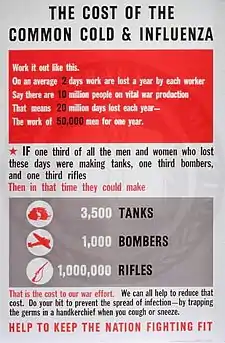 |CitationClass=تم تجاهله (مساعدة) - "The Cost of the Common Cold and Influenza". Imperial War Museum: Posters of Conflict. vads. مؤرشف من الأصل في 27 يوليو 2011. الوسيط